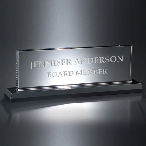 Experience the difference that a personalized glass desk name plate can make in enhancing your workspace. Not only does it add a touch of sophistication, but it also serves as a reflection of your professionalism and attention to detail. Let Designs Engraved be your partner in creating a name plate that truly represents your unique identity.